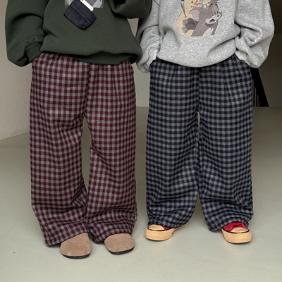 비다이어리.깅엄체크기모일자팬츠